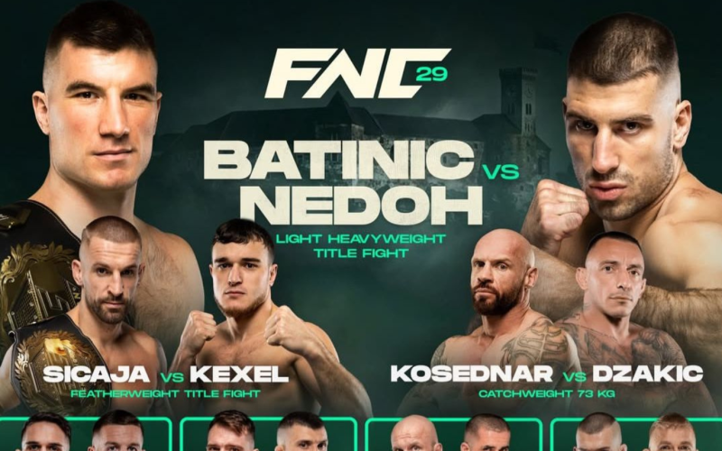 FNC karavana se seli u Ljubljanu. U projestolnici Slovenije gledat ćemo 11 sjajnih mečeva, a gledat ćemo i dvije borbe za titulu. Čeka nas i zaključivanje trilogije između Bojana ‘Želve’ Kosednara i Dušana Džakića te odličan meč Andrije Stankovića i Antonija Budimira.